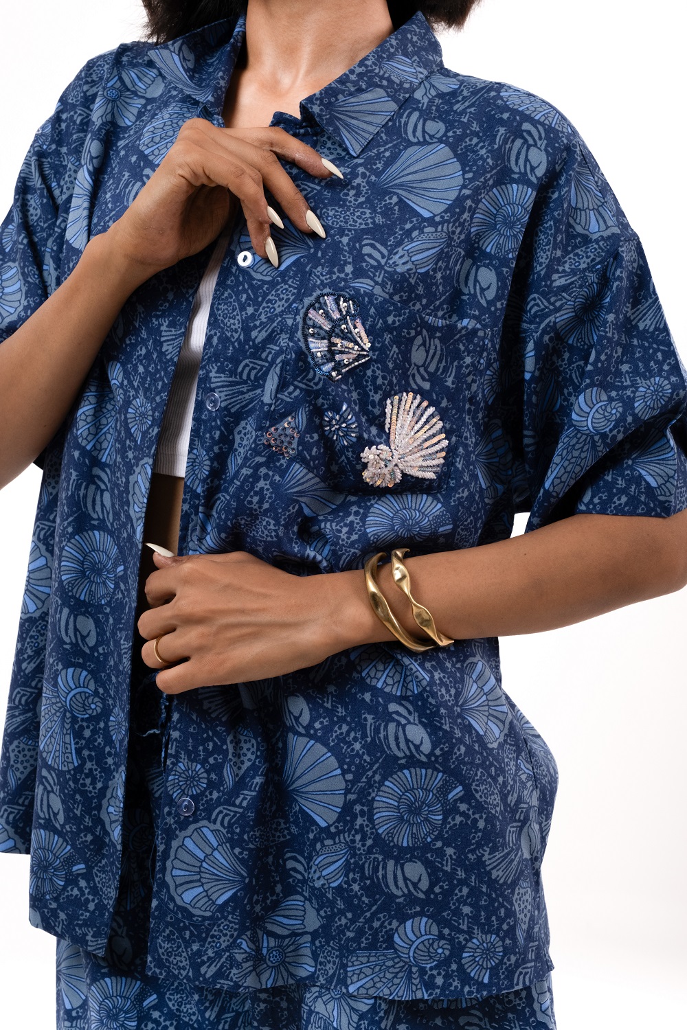 – Shell embroidery on pocket